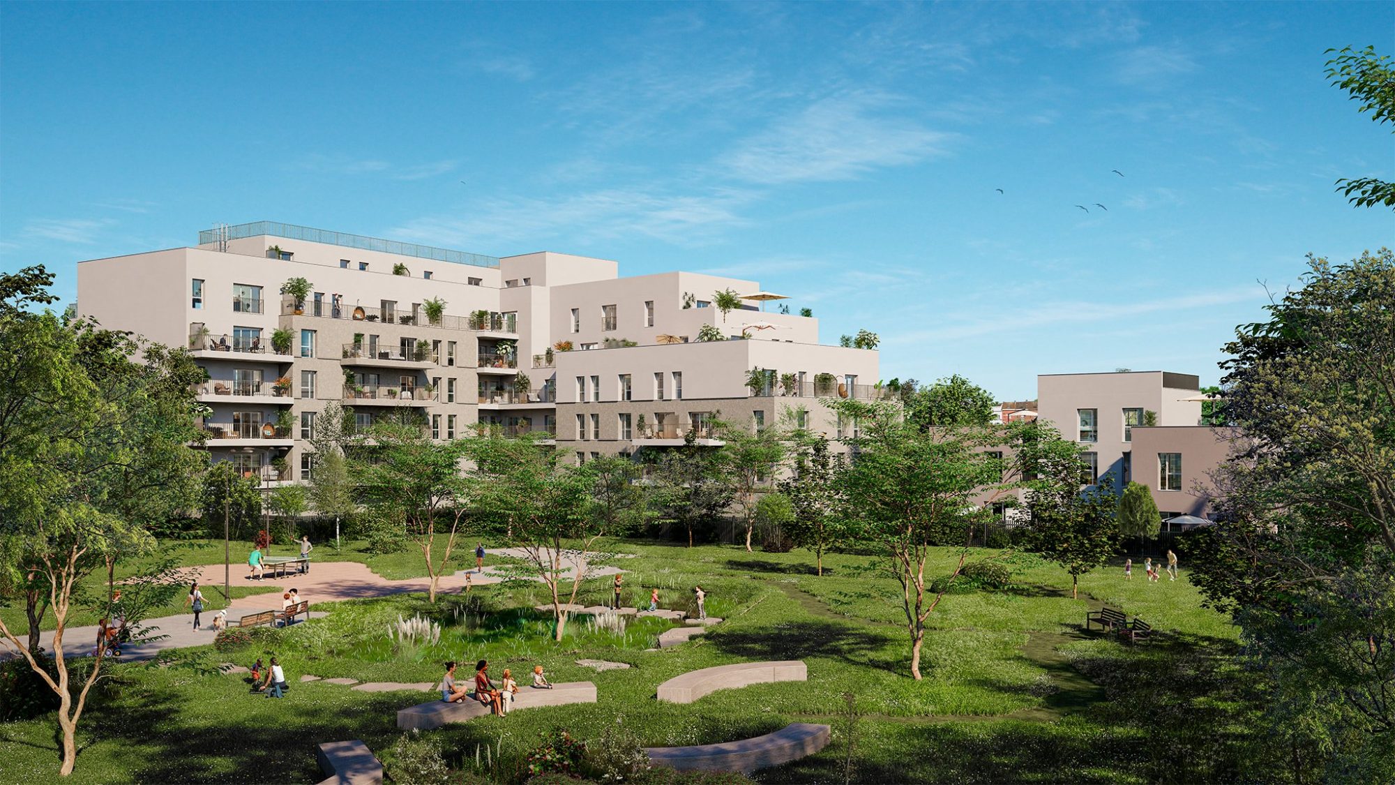La volumétrie optimise l'orientation des appartements vers le futur espace vert commun, garantissant vues qualitatives et ensoleillement optimal. Le jeu de retraits, d'alignements et d'épannelages crée des balcons et terrasses de qualité, enrichissant la vie des résidents.