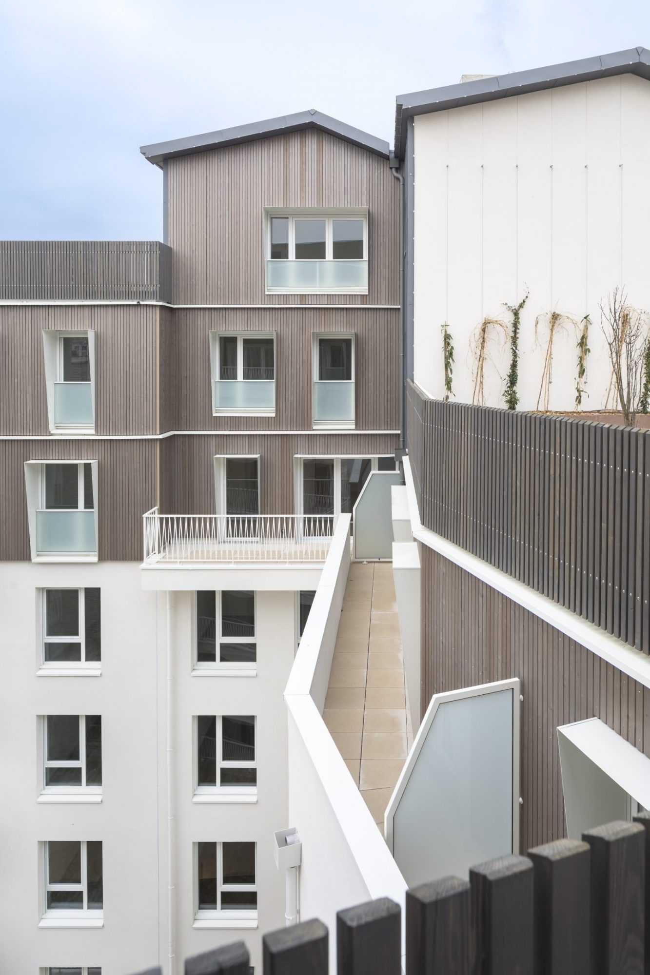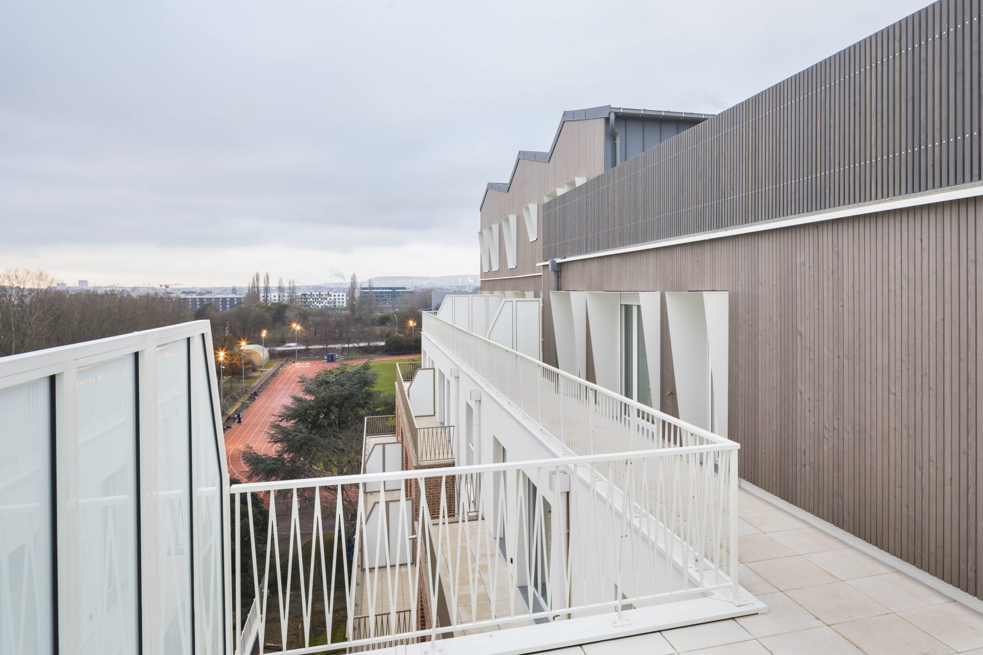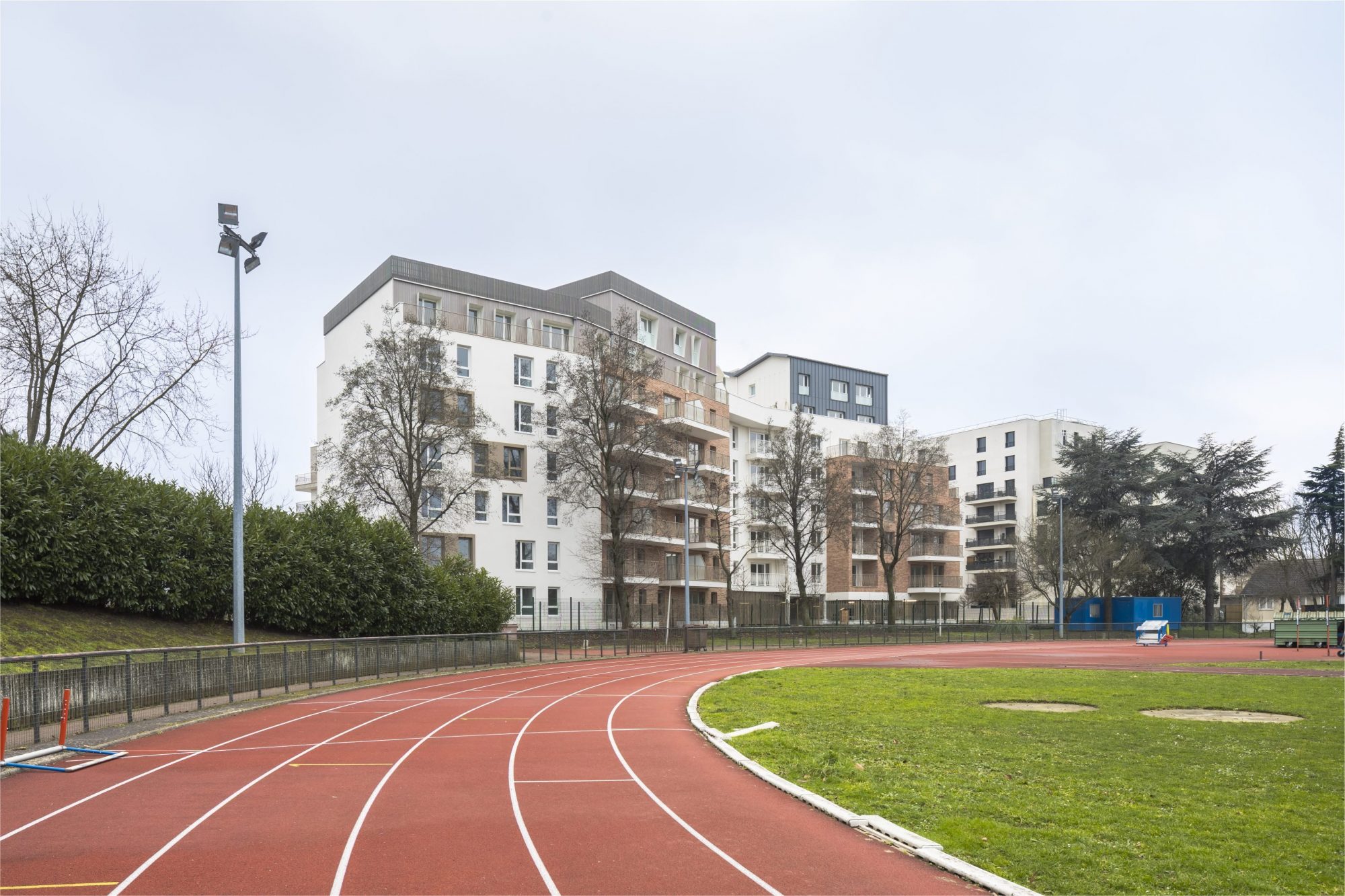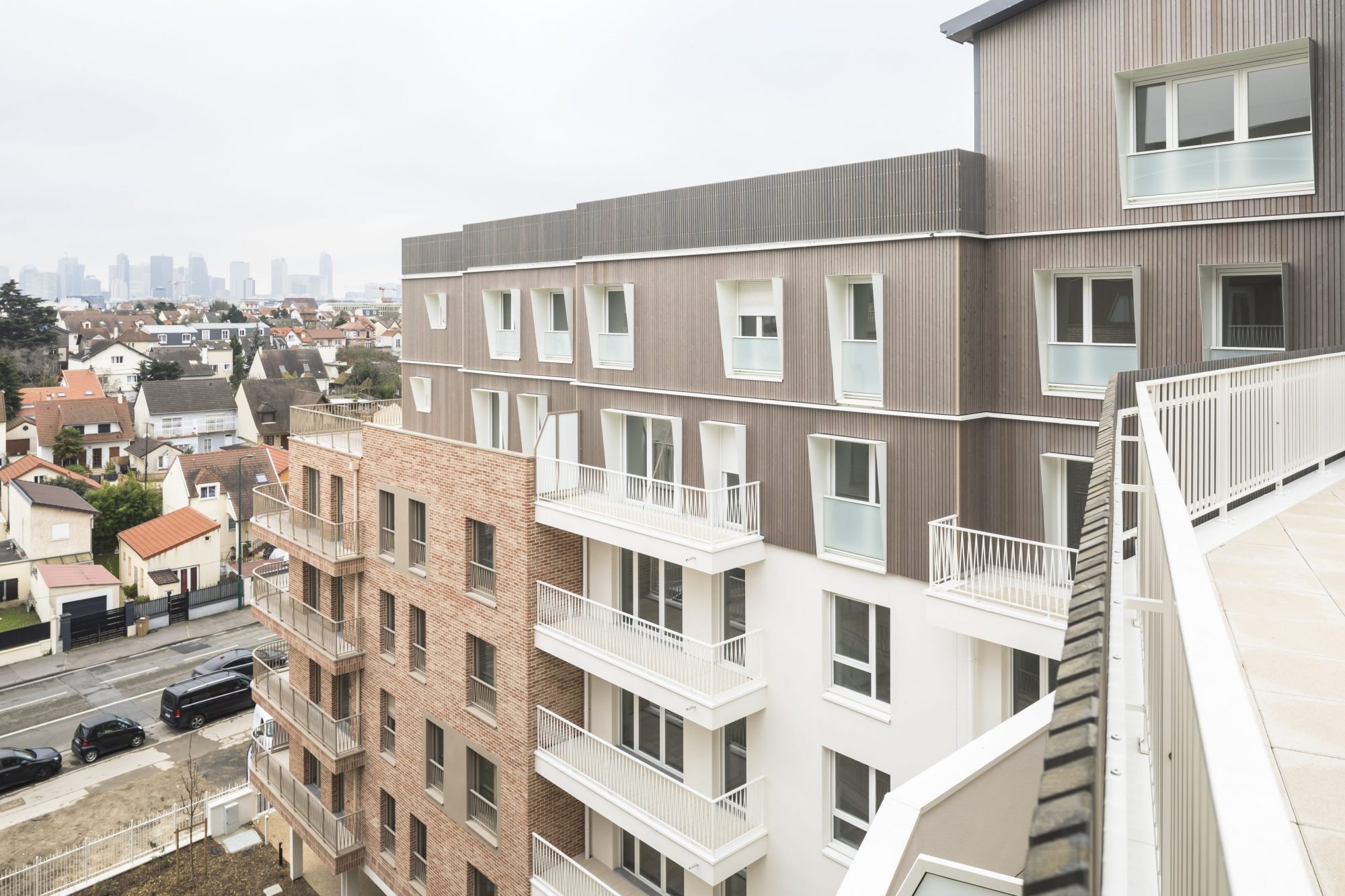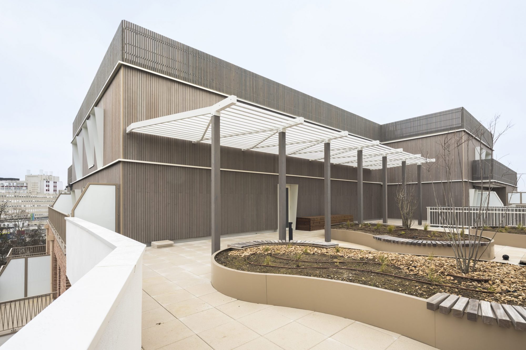 140 logements collectifs dont 42 logements sociaux bénéficiant d'espaces collectifs partagés : toiture et salle commune à rez-de-chaussée.