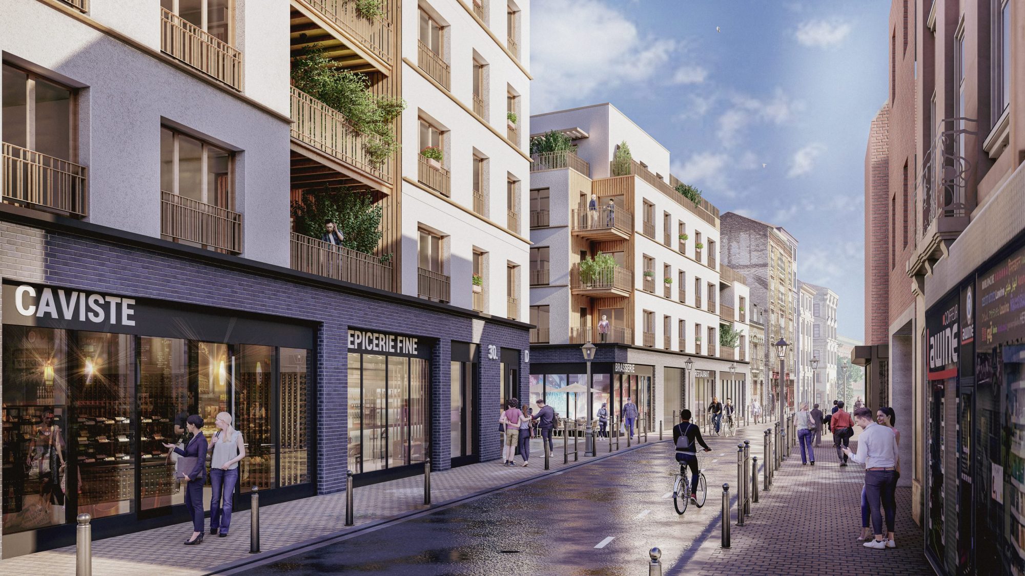 combinée avec la forme des bâtis et leur finesse de gabarit permet d’offrir un maximum de logements traversants ou doublement orientés avec des espaces de vie orientés vers le Sud-Est/Sud-Ouest.